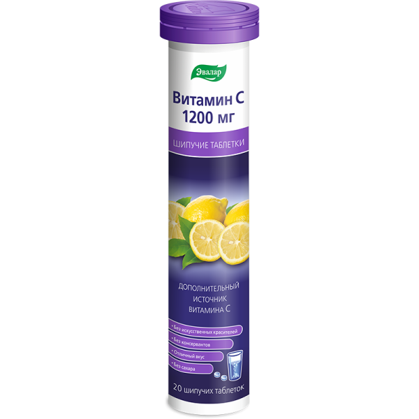 Витамин С 1200мг (20шипучих таблеток), Эвалар