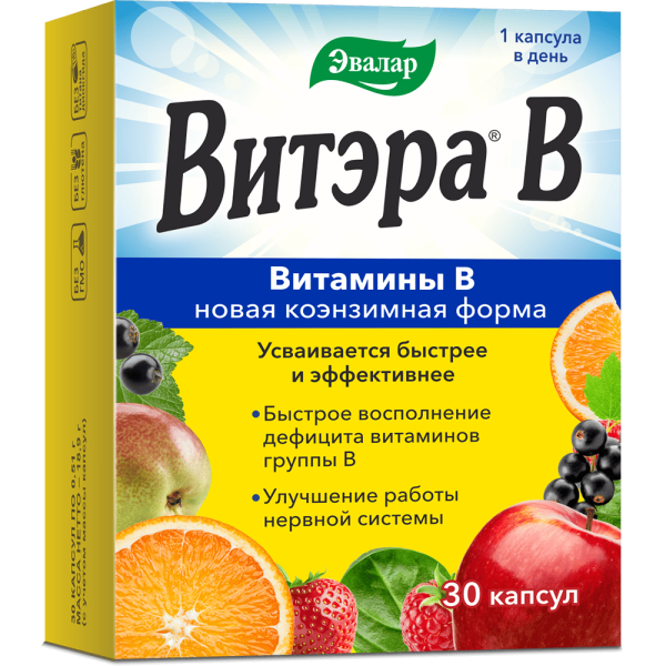 Комплекс «Витэра В» представляет собой новую эру витаминов группы В в активной коэнзимной форме, что позволяет им легко усваиваться. Эти витамины усваиваются быстрее и эффективнее, чем обычные, и обладают следующими свойствами: