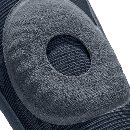 Гибкие стальные пружины обеспечивают боковую стабилизацию колена, а силиконовое кольцо по передней части защищает коленную чашечку.