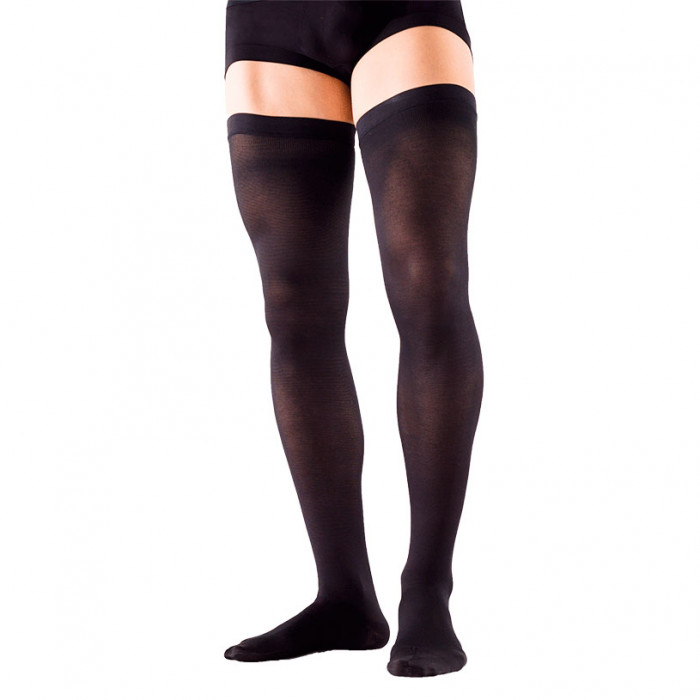 Чулки создают дозированное давление от лодыжки до бедра на уровне 1-го класса компрессии (18-21 мм рт.ст.), обеспечивая комфорт и поддержку вен.