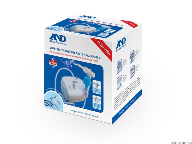 Компрессорный медицинский ингалятор AND CN-233 предназначен для лечения и профилактики острых и хронических респираторных заболеваний дыхательных путей.