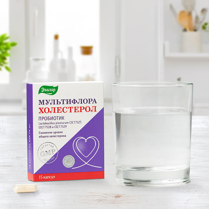Пробиотики — это живые микроорганизмы, которые оказывают положительное влияние на здоровье при регулярном употреблении. Штаммы Lactobacillus plantarum, входящие в состав «Мультифлора Холестерол», помогают выводить желчные кислоты из организма, что способствует использованию запасов холестерина для их образования. Этот пробиотик поддерживает здоровье сердечно-сосудистой системы и помогает снижать уровень «плохого» холестерина.